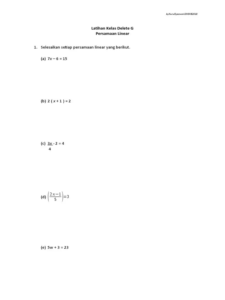 Soalan Persamaan Linear / Ejercicio De 2 0 Persamaan Linear